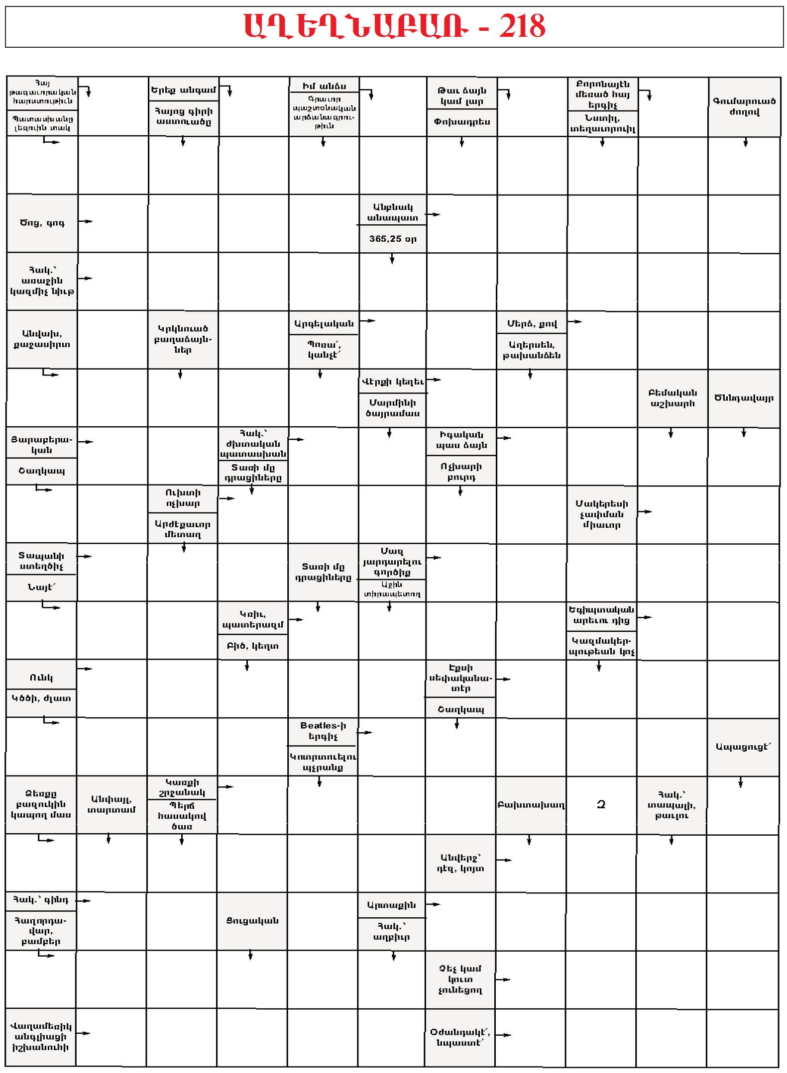 Պատրաստեց՝ <strong>ՆԱՆՕՐ ԳՈՉՈՒՆԵԱՆ-ԹԱՇՃԵԱՆ</strong> <a href="https://www.aztagdaily.com/wp-content/uploads/2025/10/agheghnapar-tiv-218.jpg"><img class="aligncenter size-full wp-image-662371" src="https://www.aztagdaily.com/wp-content/uploads/2025/10/agheghnapar-tiv-218.jpg" alt="" width="1581" height="2157" /></a>