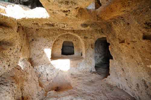 Քարայրները դասաւորուած են իրարու վերեւ, կազմելով երեք յարկ:
