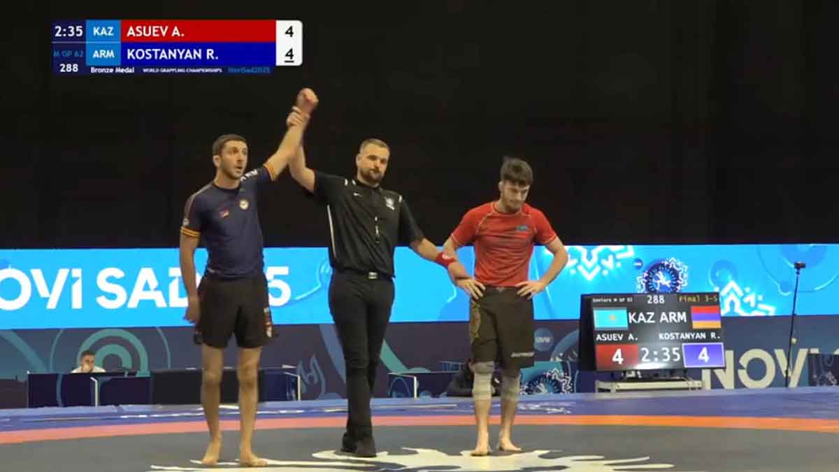 «Էմ. Էմ. Էյ.»-ին մաս կազմող «Կրեփլինկ» մարզաձեւի 62 քկ կշիռի պրոնզի մետալի մրցումին, Կոստանեան պարտութեան մատնեց Ղազախստանի ներկայացուցիչ Ատլան Ասույեւը: