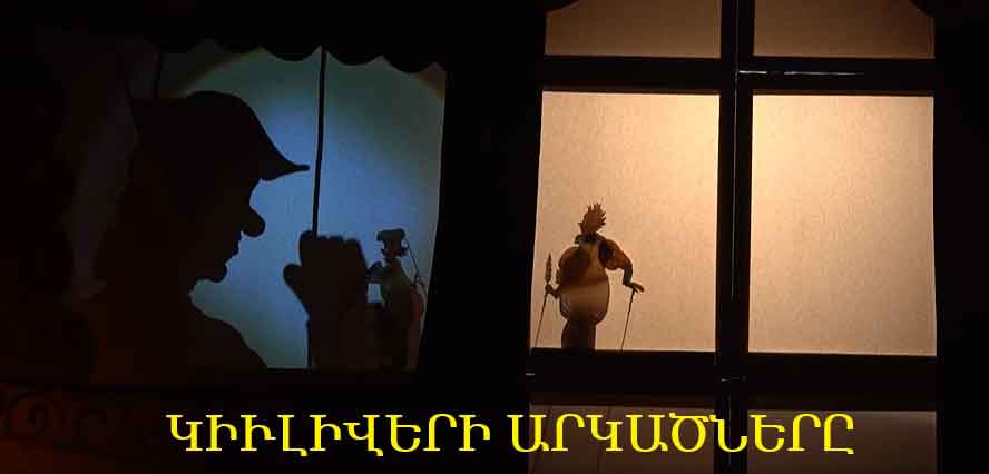 Բ.- «Կիւլիվերի արկածները», Ազգային տիկնիկային թատրոն: Ստուերախաղ: Ծանօթ վէպի չորս ճանապարհորդութիւններէն, ինչպէս ընթացիկ է, այստեղ առնուած է միայն առաջինը` «Լիլիփութիա»: Պարզ է, որ այդտեղ չէին կրնար շեշտադրուիլ Սուիֆթի ընկերային քողարկուած հայեացքները: Փոխարէնը` «Կիւլիվերը գալիս է մեզ տանելու դէպի մի աշխարհ, որտեղ … մանուկները փոխում են իրականութիւնը»: