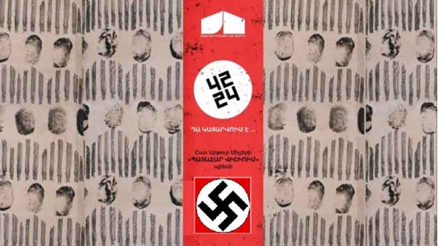 Նախ` այն, որ ինչպէս վերի որմազդը ցոյց կու տայ, երկու թիւերը կարելէ է դասաւորել այնպէս, որ յիշել տան նացի Սվասթիքան (Նացիական կեռ խաղը): Երկրորդ` այն, որ 42-24 «Հայելային պատկեր» (mirror image) մըն է: Ինչպէս ծանօթ է, հայելիի մէջ կը տեսնենք մեր աջ-ձախ շրջուած պատկերը: Միլլըրի թատերակին մէջ հարցաքննիչ հազարապետը շրջուած պատկերն է ձերբակալուած հրեաներուն: Բեմին վրայ են 40 դերակատարներ, որոնցմէ միայն 13-ը ունին գործօն դերեր: Բեմադրիչ Գոռ Մարգարեան կ՛ըսէ, որ գործը ընտրած է, որպէսզի ցոյց տայ, թէ այն, ինչ կատարուած էր 1942-ին, կը կրկնուէր 2024-ին: Այդ վերնագիրի 3-րդ մեկնաբանութիւնն է: 1942-ը ակնարկ է հրեաներու զանգուածային սպանութեան: Միլլըր, որ հրեայ մըն էր, հրէական ինքնութեան բներգը ներառած է առնուազն հինգ այլ թատրերգութիւններու մէջ: Ներկայ գործը, զոր կարելի է դասել Ողջակիզումի քարոզչութեան ծիրէն ներս, իր յաջող գործերէն մէկը չէ: Շարք մը քննադատներ համարած են ուրուագծային բարոյախօսութիւն (schematic morality play): Իսկ թէ ի՞նչ իմաստ ունի նման հոյածաւալ գործ ներառել փառատօնի ծրագիրէն ներս, երբ արդէն երկրորդ տարին է, որ Իսրայէլ վայրագ ցեղասպանութիւն կը գործէ առօրեայ կերպով, կը ձգեմ ընթերցողի հայեցողութեան: Բեմադրիչը ստացաւ իրեն ուղղած նամակս, բայց չուզեց պատասխանել իմ հարցումներուս: