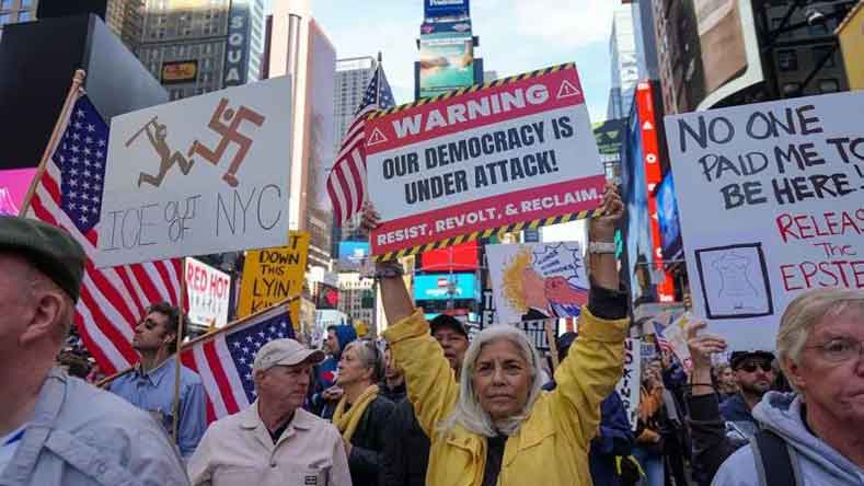 Միացեալ Նահանգներու աւելի քան 2500 (ըստ կարգ մը տեղեկութիւններու` 2700) քաղաքներու մէջ աւելի քան 7 միլիոն ցուցարարներ ողողեցին մեծ ու փոքր քաղաքներու հրապարակներն ու խորհրդանշական կեդրոնները: Բողոքը ուղղուած էր մասնաւորաբար նախագահ Տանըլտ Թրամփի, նաեւ իր «պոչիկները» հանդիսացող հանրապետական կուսակցականներու դէմ (նախարարներ, խորհրդարանի անդամներ, նահանգապետներ եւ այլ): Ընդհանուր խորագիրը` «Ո՛չ թագաւորներու», ինքնին շատ բան կը բացատրէր: Մարդիկ շատո՜նց տեսած են, որ Թրամփ կը գործէ բռնակալ-մենատէր-միապետի մը պէս, ոտնատակ ըրած է սահմանադրութիւն եւ օրէնքներ, իր ափին մէջ կեդրոնացուցած է իշխանութեան երեք թեւերուն` օրէնսդիրին, գործադիրին եւ դատականին, ղեկավարութիւնները, որոնք կորսնցուցած են ժողովուրդին վստահութիւնը (քննադատները այդ խամաճիկները կը կոչեն Թրամփի ձեռքը, ոտքն ու այլ տեղ համբուրողներ, դեմոկրատ ընդդիմադիրները կը ստանան դժգոհութեան իրենց բաժինը), կամայական ձեւով գործի լծած է ոստիկանութիւն եւ ազգային ուժեր (բանակ եւ այլ): Դժգոհութեան ալիքներ բարձրացուցած են մասնաւորապէս օտարականներու դէմ իշխանաւորին արշաւները (ICE-ի` Ներգաղթի եւ սահմանակայաններու հսկողութեան ուժերու բռնարարքները), ընկերային ապահովութեան կալուածին տրուած հարուածները, տնտեսութեան դէմ իրողական սպառնալիքները եւ… շարքը երկար է: Դժգոհութեան նորագոյն պատճառներէն մէկն ալ կառավարութեան պիւտճէին անվաւեր մնալուն պատճառով` բազմահազար պաշտօնեաներու եւ աշխատողներու գործէ արձակումն է, հետեւաբար` որոշ մարզերու մէջ ստեղծուած քաոսը, առանց մոռնալու լատինամերիկեան երկիրներու դէմ զինեալ գործողութիւններու նորագոյն արշաւները, որոնք, ի դէպ, հաւասարապէս դժգոհութիւն ստեղծած են խորհրդարանական երկու կուսակցութիւններուն` Հանրապետական եւ Դեմոկրատ շարքերուն մէջ: