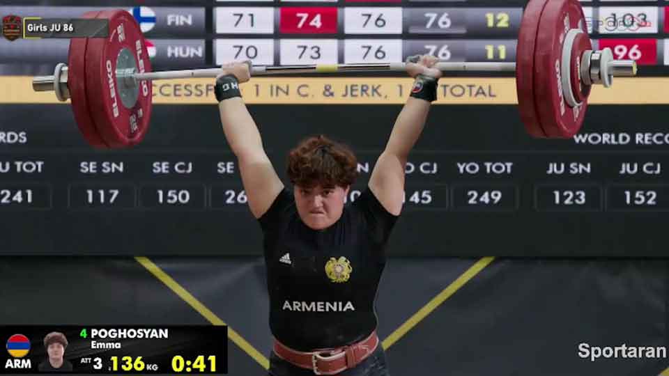 Անոր 136 քկ կշիռը գերազանցեց թուրք մրցակիցին, որ երկամարտի հաշուով գրաւեց Բ. դիրքը` Էմմա Պօղոսեանի ետին: