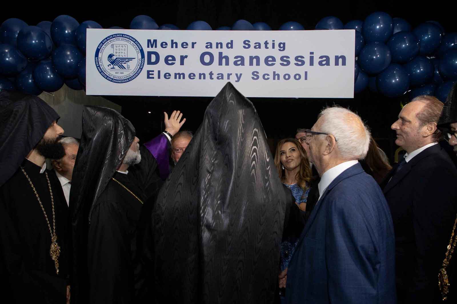 Նոյն օրը երեկոյեան Արամ Ա. վեհափառին ձեռամբ բացումը կատարուեցաւ եկեղեցւոյ կից գտնուող «Մհեր եւ Սադիկ Տէր Օհաննէսեան» կրթական համալիրին: Այս առիթով հայրապետը ըսաւ, թէ ինչպէս Եկեղեցին նոյնպէս դպրոցը սրբավայր է մեզի համար, աւելցնելով, որ հայ դպրոցին ճամբով մեր զաւակները սոսկ գիտութիւն չեն ստանար, այլեւ կը թրծուին մեր հոգեւոր, բարոյական ու ազգային արժէքներով: Այլ խօսքով, հայ դպրոցը հայուն մէջ հա՛յը կ՛ամրացնէ, հայու ինքնութիւնը կը բիւրեղացնէ, նոյն ազգին մեր պատկանելիութիւնը կ՛ամրապնդէ: Կաթողիկոսը ողջունեց յատկապէս Քալիֆորնիոյ մէջ հայ դպրոցին նկատմամբ մեր ժողովուրդին աճող սէրը, սպասումն ու կապուածութիւնը եւ իր բարձր գնահատանքը յայտնեց ազգային բարերար Մհեր Տէր Օհաննէսեանին ու անոր զաւակներուն:
