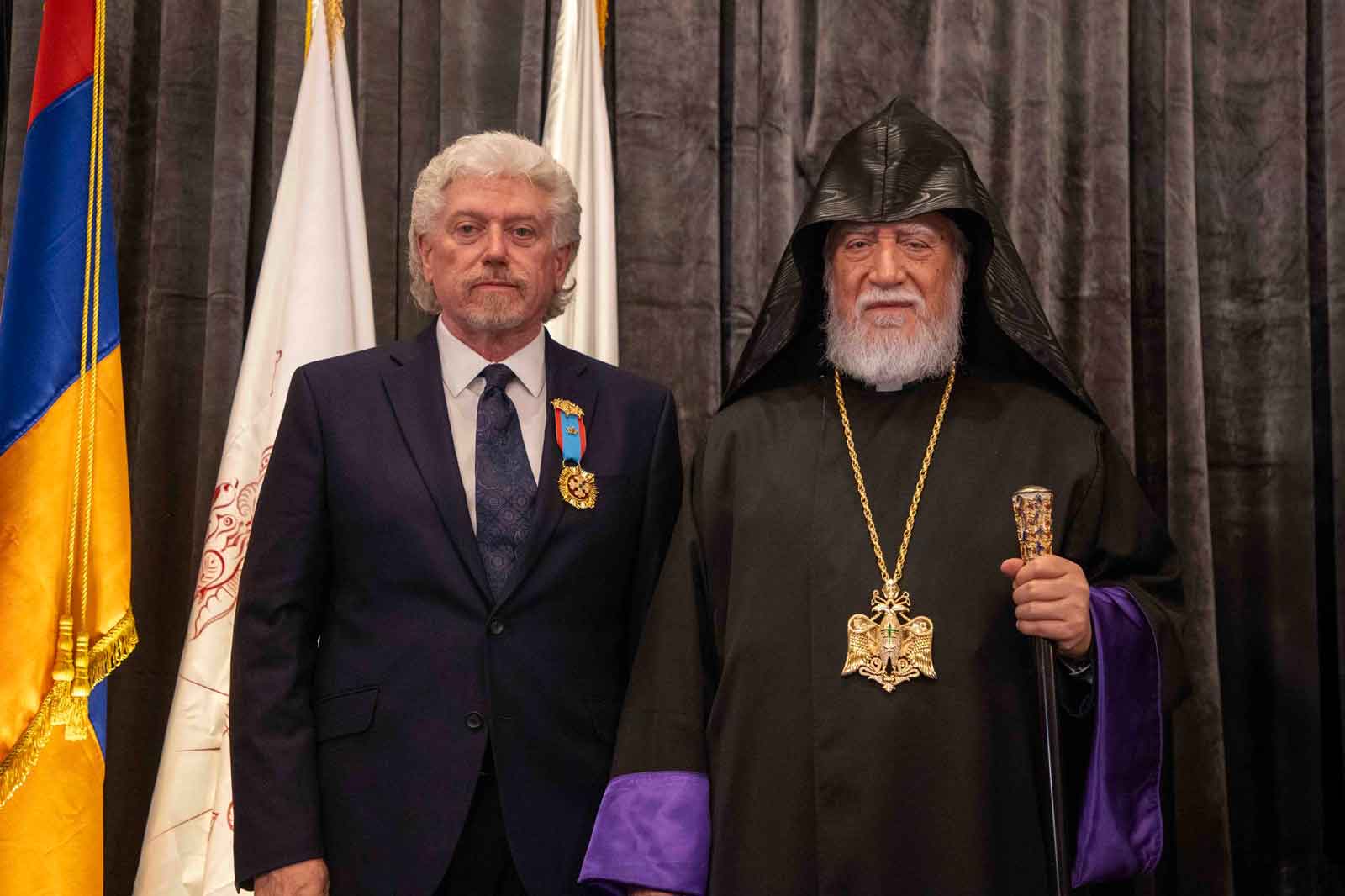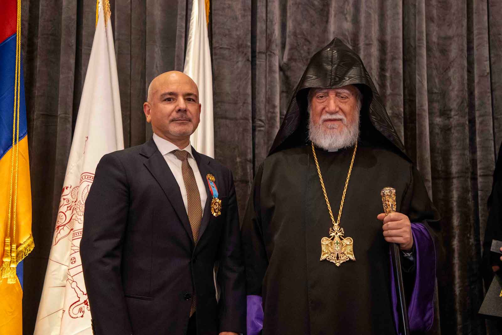 Իր խօսքի աւարտին վեհափառը յատուկ կերպով անդրադարձաւ Արեւմտեան թեմի եւ Սուրբ Աթոռի բարերարներէն Մհեր Տէր Օհաննէսեանին կատարած ազգանուէր եւ օրինակելի ծառայութիւններուն ու կատարած բարերարութիւններուն եւ անոր շնորհեց Մեծի Տանն Կիլիկիոյ կաթողիկոսութեան «Կիլիկեան իշխան» շքանշանը: