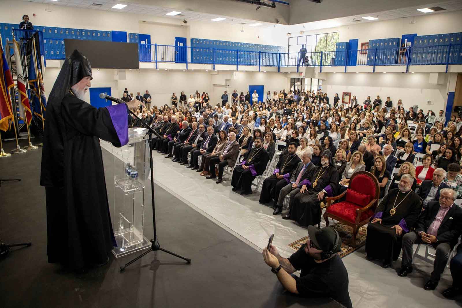 Նոր գնուած կալուածի տարածքին մէջ աշակերտները ներկայացուցին գեղարուեստական յայտագիր մը, որմէ ետք առաջնորդը եւ կաթողիկոսը արտասանեցին իրենց սրտի խօսքերը` շեշտելով կրթութեան եւ յատկապէս հայկական դպրոցներուն դերակատարութեան կարեւորութիւնը հայապահպանման պայքարին մէջ: