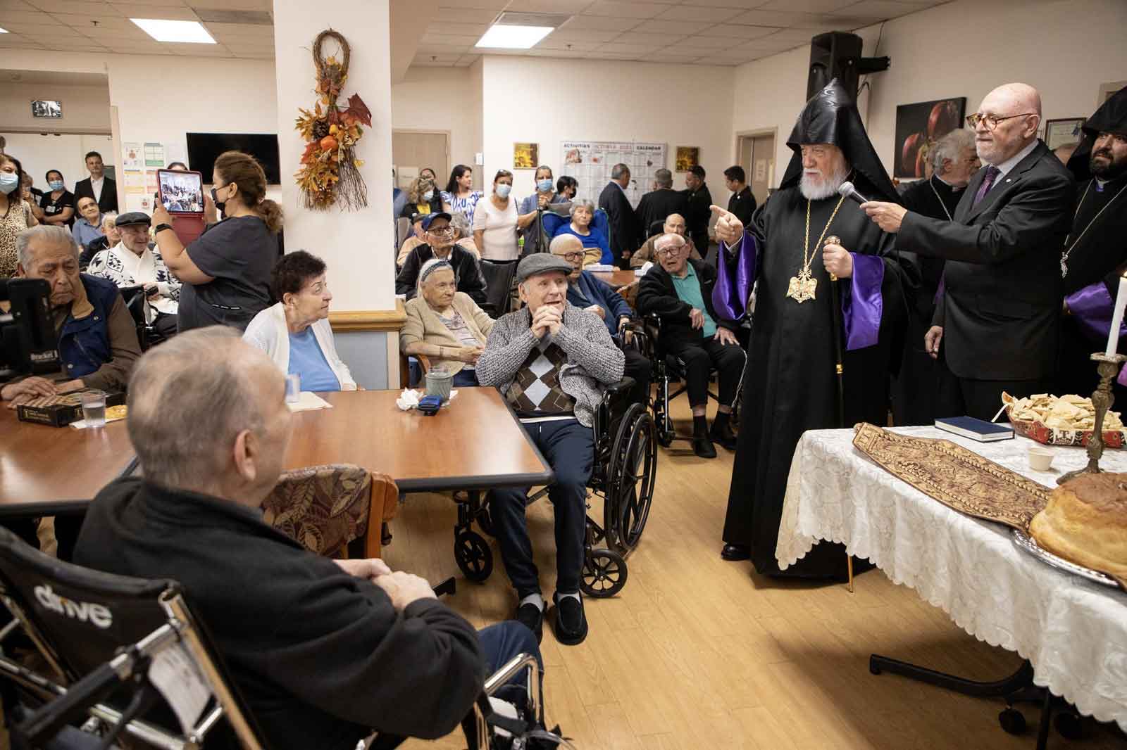Այնուհետեւ «Արարատ տուն»-ի բնակիչներէն ոմանք ողջոյնի ու բարի գալստեան խօսքեր արտասանեցին վեհափառին: