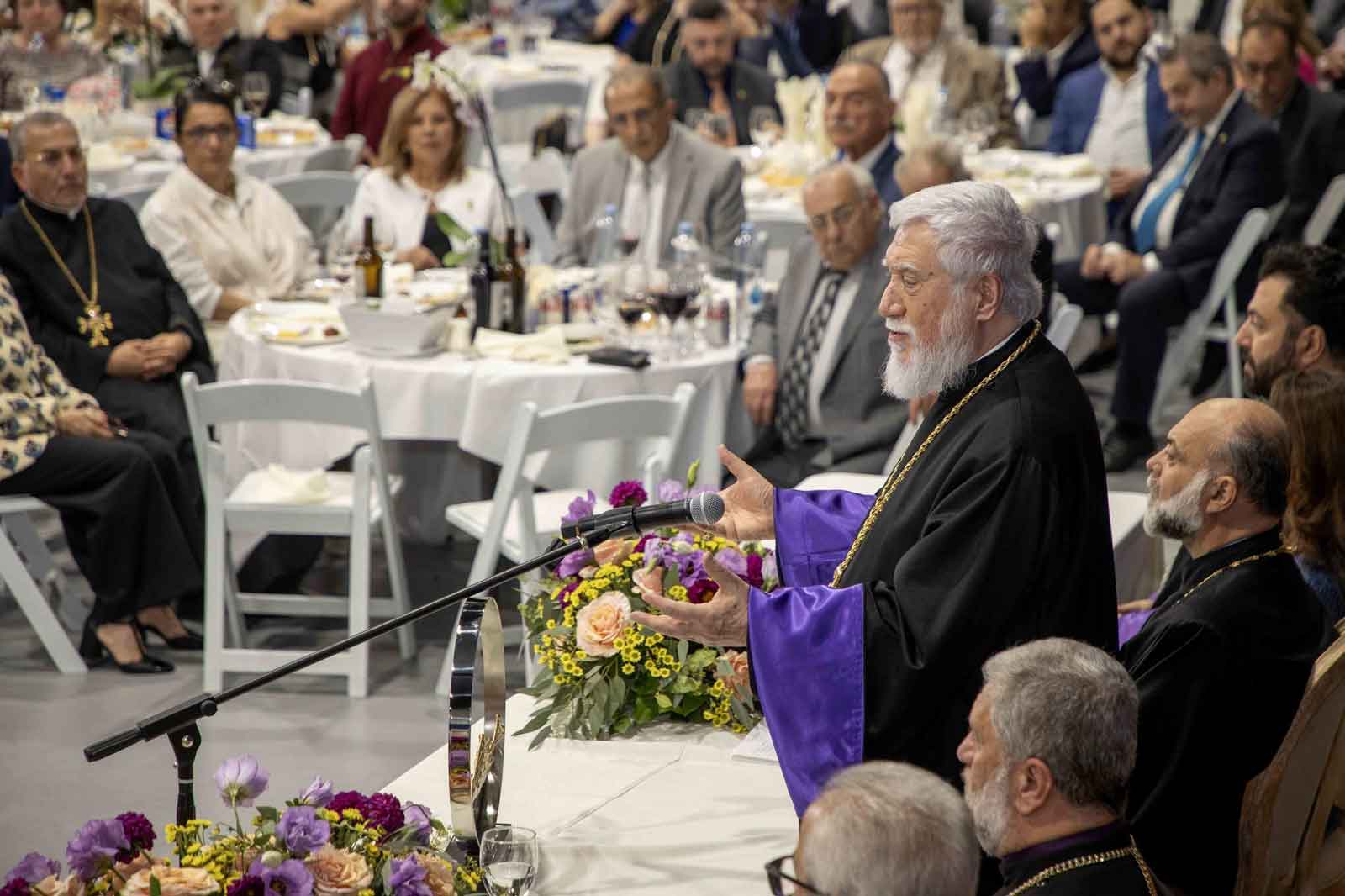 Ճաշկերոյթի աւարտին կաթողիկոսը իր խօսքին մէջ կեդրոնացաւ թեմի պարզած դրական իրավիճակին. «Անցնող օրերուն շատ բան տեսայ ու լսեցի եւ մանաւանդ շատ բան զգացի` տեսանելի երեւոյթներէն ու իրողութիւններէն անդին: Կ՛ուզեմ խոր գոհունակութեամբ հաստատել, որ թեմը վերականգնումի դրական ընթացքի մէջ է: Իմ սպասումս է, որ վերականգնումի ընթացքը վերածուի վերազարթօնքի` համախմբուելով մեր համայնքային կառոյցներուն շուրջ: Կ՛ուզեմ վստահեցնել, որ Մեծի Տանն Կիլիկիոյ կաթողիկոսութիւնը ձեզի հետ է, զօրակից ու գործակից` ձեր աշխատանքներուն», ըսաւ ան:
