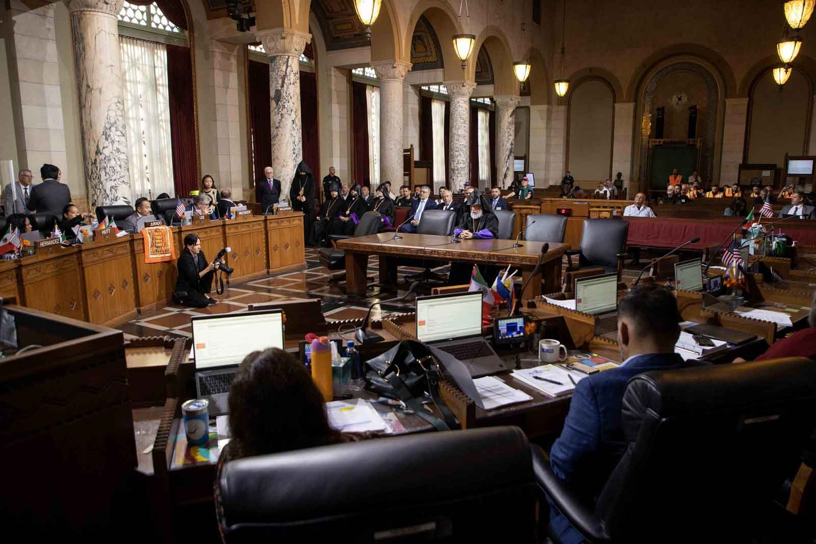 Արամ Ա. կաթողիկոս յիշեցուց, որ հայ համայնքը կարեւոր դեր ունի քաղաքին մէջ, յատկապէս` տնտեսական մարզին մէջ, շեշտելով, որ քաղաքապետութեան հիմնական նպատակը պէտք է ըլլայ ծառայել ժողովուրդին եւ հսկել անոր ապահովութեան ու բարեկեցութեան: