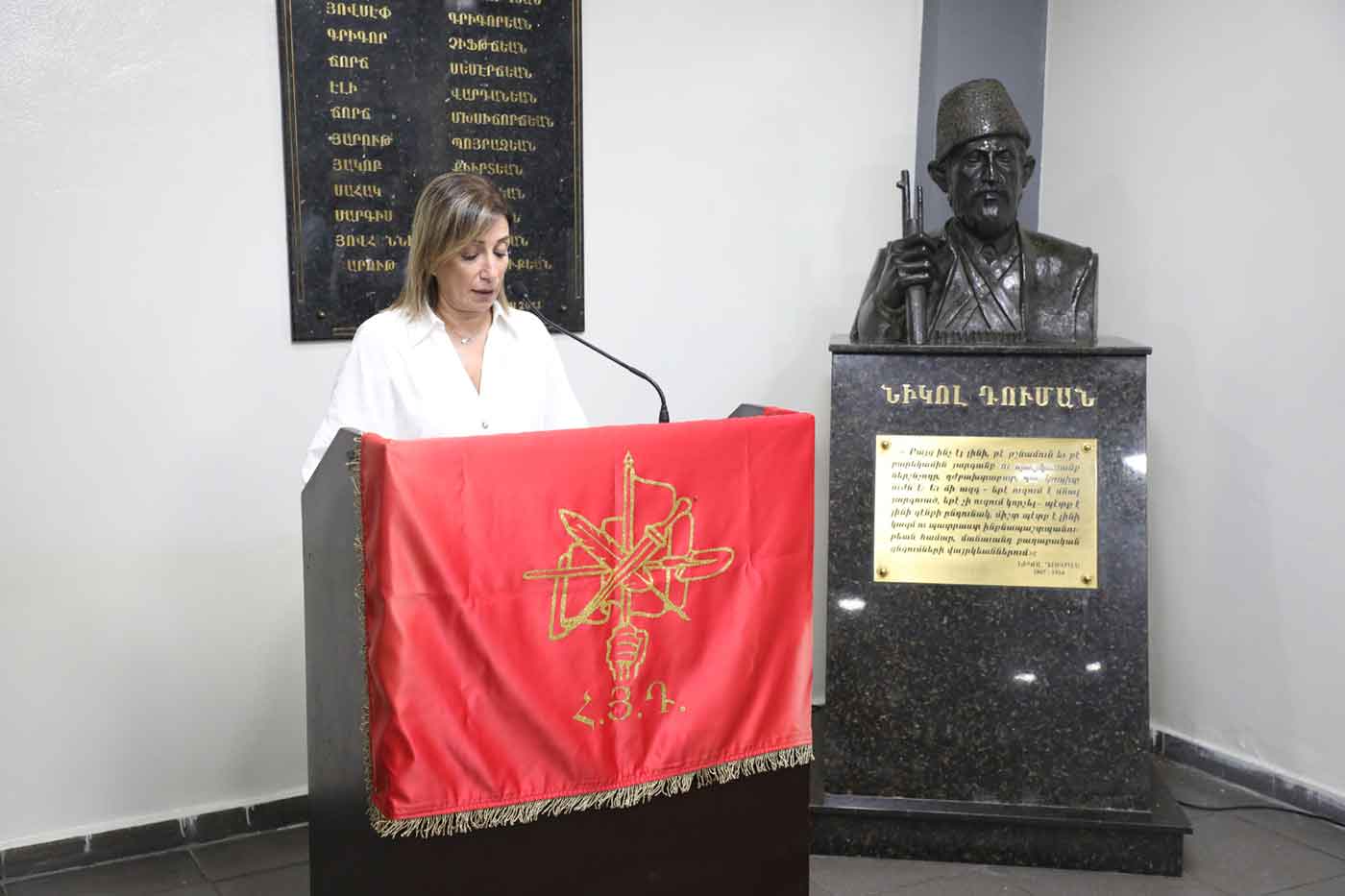 ՀՅԴ «Նիկոլ Դուման» կոմիտէին խօսքը արտասանեց Մարալ Մխսեան: Ան յայտնեց, որ երբ կոմիտէն որոշում տուաւ «Քրիստափոր Արթին ժողովասրահ»-ի բացման, ունէր 2 նպատակ. նախ` անթառամ պահել նահատակ ընկերոջ յիշատակը, իսկ երկրորդ` արժեւորել «Նիկոլ Դուման» կոմիտէութեան աւելի քան 70 տարուան գործունէութիւններն ու զոհողութիւնները` միշտ բարձր պահելու մեր ժողովուրդին կամքն ու պատիւը, ինչպէս նաեւ` արժեւորել Հայ դատին ու ազատագրական պայքարներու ընթացքին զոհուած մեր հերոսները:
