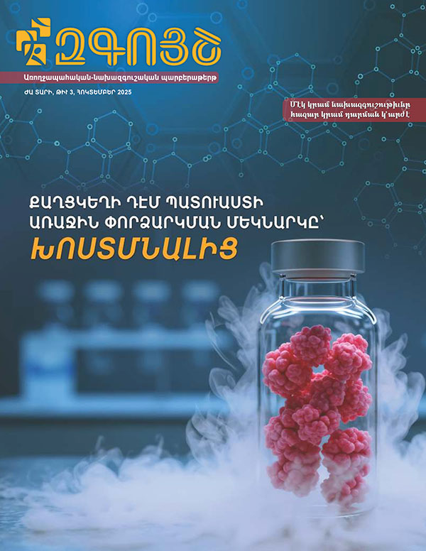 Վերջերս լոյս տեսաւ պարբերաթերթի 2025 տարեշրջանի երրորդ թիւը: Պարբերաթերթը կը բովանդակէ արդիական եւ այժմէական բժշկական նիւթեր, որոնք գրուած են մասնագէտ բժիշկներու կամ այլ մասնագէտներու կողմէ: Հոկտեմբեր 2025-ի 62 էջերէ բաղկացած թիւը կը ներառէ բաւական հետաքրքրական եւ բժշկութեան ասպարէզին մէջ մեծ փոփոխութիւններ բերելու հաւանականութիւն ունեցող նիւթ մը` քաղցկեղի դէմ պատուաստի առաջին փորձարկման մեկնարկի մասին տեղեկութիւններ: Կան նաեւ ստամոքս-աղիքային հիւանդութիւններու, լեարդի, լսողութեան, հարբուխի, ատամնաբուժութեան, մկանային եւ ոսկրային ցաւերու մասին գրութիւններ, որոնք ընթերցողին կը ներկայանան յստակ բացատրողականով եւ կը նպաստեն այդ հիւանդութիւններու նախազգուշութեան: Նոյն թիւին մէջ կը կարդանք նաեւ` մանկամսուրներու անհրաժեշտութեան, միայնութեան զգացումին ժխտական երեւոյթներուն, դրական մտածելակերպի օգուտներուն, շրջապատին մեր վրայ ունեցած ազդեցութեան, հոգեբանական մարտահրաւէրները յաղթահարելու, աշխուժացնող ըմպելիներուն մեր վրայ ունեցած ազդեցութեան եւ նման օգտաշատ նիւթերու մասին, որոնք կը զարգացնեն ընթերցողին գիտելիքները: