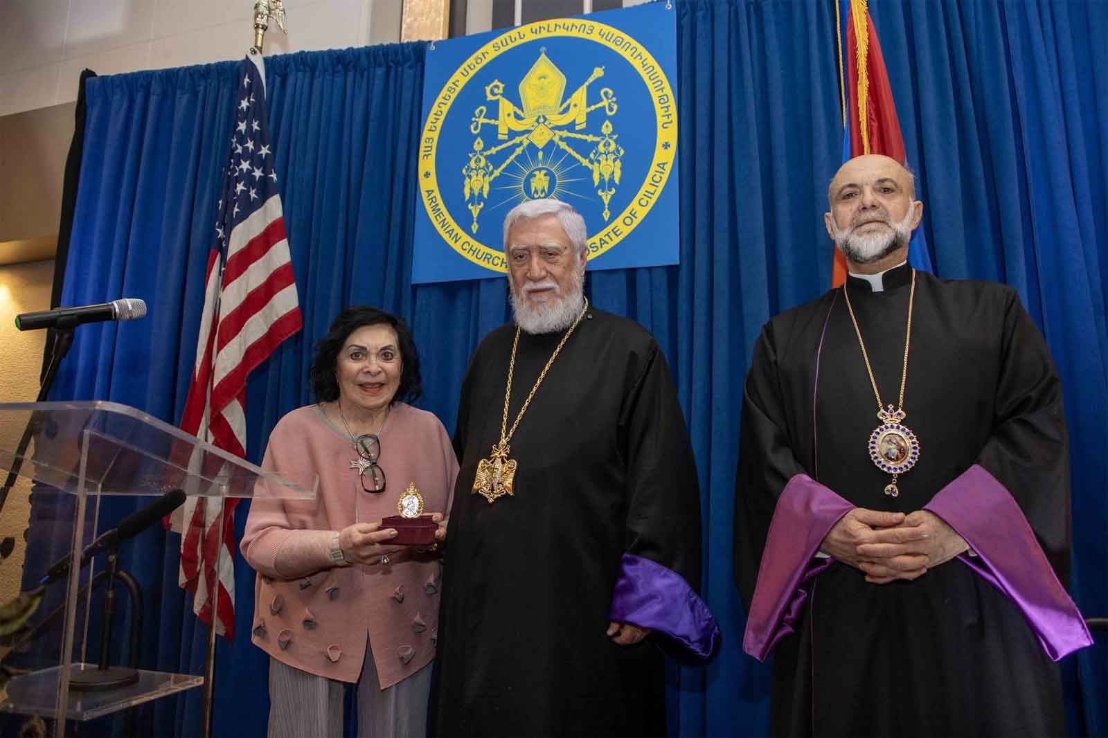 Արամ Ա. կաթողիկոս իր խօսքի աւարտին` իբրեւ գնահատանքի արտայայտութիւն երկար տարիներու վաստակի ու ծառայութեան, Մեծի Տանն Կիլիկիոյ կաթողիկոսութեան «Կիլիկեան ասպետ» շքանշանով պարգեւատրեց գաղութի զաւակներէն` Ալիս Կիւրէղեանը, Պիլ Սահաթճեանը եւ Մարվին Գաբրիէլեանը: Ան նաեւ յատուկ յուշանուէրով պատուեց ազգային բարերար Վահան Շամլեանի այրին` Անուշ Շամլեանը` հայութեան կեանքին մէջ Շամլեան ընտանիքին ունեցած նիւթաբարոյական կարեւոր ներդրումին համար:
