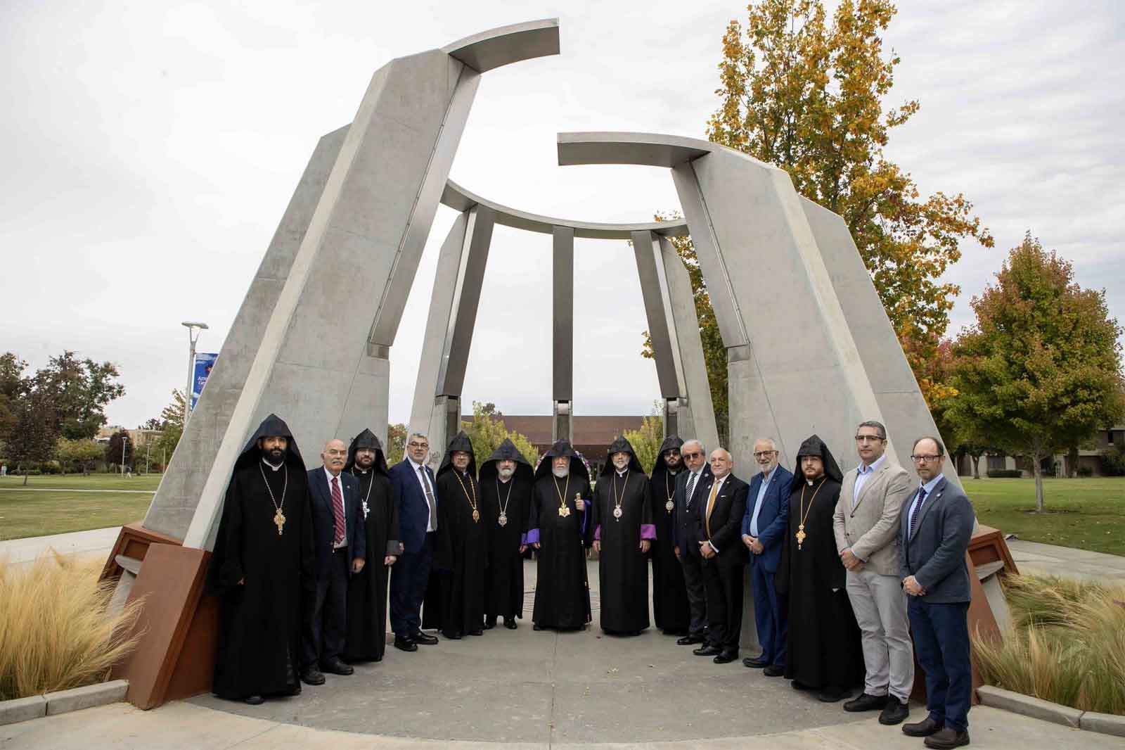 – Նոյն օրը Արամ Ա. այցելեց Ֆրեզնոյի համալսարանը, ուր դիմաւորուեցաւ համալսարանի Հայագիտական ուսմանց բաժինի տնօրէն Պարլօ Տէր Մկրտիչեանին եւ անոր գործակիցներուն կողմէ: Վեհափառը նախ ուղղուեցաւ համալսարանի շրջափակին մէջ բարձրացած Հայոց ցեղասպանութեան նուիրուած յուշարձան, ուր իր նախագահութեամբ տեղի ունեցաւ բարեխօսական կարգ: Արարողութեան աւարտին կաթողիկոսը ողջունեց յուշարձանի ծրագիրին իրագործումը` Ֆրեզնոյի մէջ Հայաստանի Հանրապետութեան պատուոյ հիւպատոս Պերճ Աբգարեանի եւ համալսարանի Հայագիտական ուսմանց բաժինի տնօրէնին գործակցութեամբ: Ան ըսաւ, որ պետութիւններ զանազան հաշիւներէ մղուած` կրնան ցեղասպանութիւն բառը չգործածել, սակայն մէկ ու կէս միլիոն հայերու ջարդը ծրագրուած ու գործադրուած ցեղասպանութիւն էր միջազգային օրէնքին համաձայն: Ցեղասպանութիւնը հայ ժողովուրդի հաւաքական յիշողութեան մէջ ամրօրէն արմատացած է: Հայ ազգը կը պահանջէ Ցեղասպանութեան ճանաչում ու հատուցում: