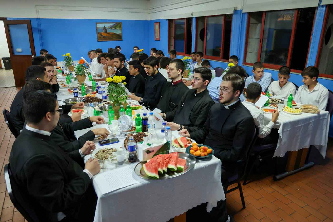 Տօնական օրերուն կամ հիւրերու այցելութիւններու ընթացքին, սեղանին վրայ, համեղ ուտեստեղէնի կողքին, պէտք է հրամցուի «ոգեղէն հացը»` հայ երգը: Որեւէ ժամանակ տեսուչը կամ տեսչական կազմի անդամներէն մէկը նշան կ՛ընէ աշակերտներուն, որպէսզի սկսին ճաշկերոյթը ճոխացնել գեղեցիկ երգերով: Այս իմաստով պէտք է միշտ պատրաստ ըլլալ, որովհետեւ հրահանգը կրնայ տրուիլ անսպասելի պահու մը նոյնիսկ: Իսկ երբ երգեցողութիւնը սկսի, կանգ առնելը դժուար է: Աւելի՛ն. եթէ ճաշի պնակդ չես պարպած տակաւին, ուրեմն երկա՜ր պիտի սպասես ճաշդ շարունակելու համար: