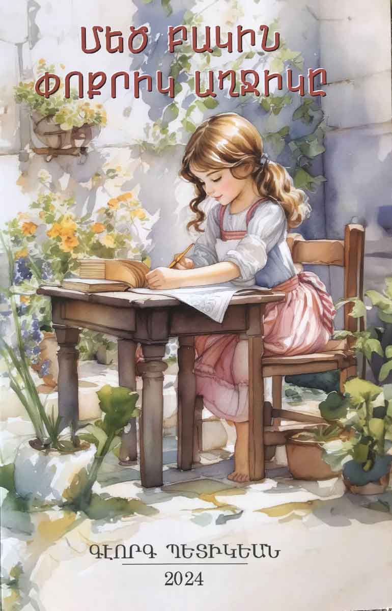 Հետաքրքրական զուգադիպութեամբ գրասեղանիս անկիւնը ծուարած գրքերէն ձեռքս վերցուցի երկուքը` Գէորգ Պետիկեանի «Մեծ բակին փոքրիկ աղջիկը» սիրավէպը (այո՛, մի՛ զարմանաք. ութսունն անց գրողը անցեալ տարի հրատարակած է) եւ Հայաստանի «Աստուածաշնչային ընկերութեան» նոր հրատարակութիւնը` «Սիրոյ պատմութիւններն Աստուածաշնչում» [Աստուածաշնչային հատուածներու ընտրութիւնը եւ ներածականները` Անեգրէթ Փութքամերի, գերմաներէնէն թարգմանութիւնը` տէր Անդրէաս վրդ. Եզեկեանի, խմբագիր եւ սրբագրիչ` Լուսինէ Վարդանեան]: