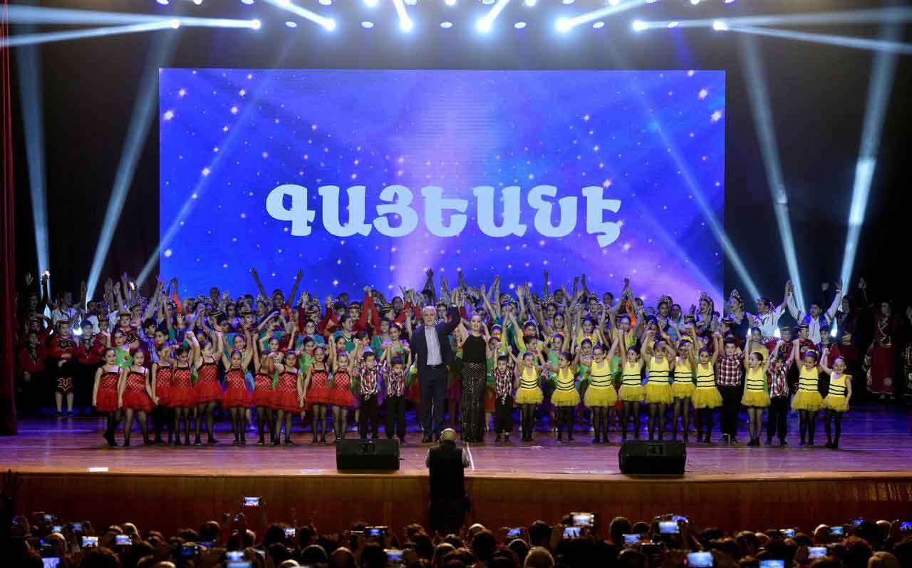 Պարուսոյցներ Ժագլին Սարխոշեանի ու Կարէն Մակինեանի հսկողութեամբ, առաջին արարով «Գայեանէ»-ի աշակերտները ներկայացուցին` «Եարխուշտա», «Վեր վերի», «Հէյ ջան Հայաստան», «Հայկական պար», «Շիրակի պար», «Հայկական պար», «Քոչարի», «Տոտիկ», «Հայուհի», «Պեպոյի երգը», «Արցախին»: