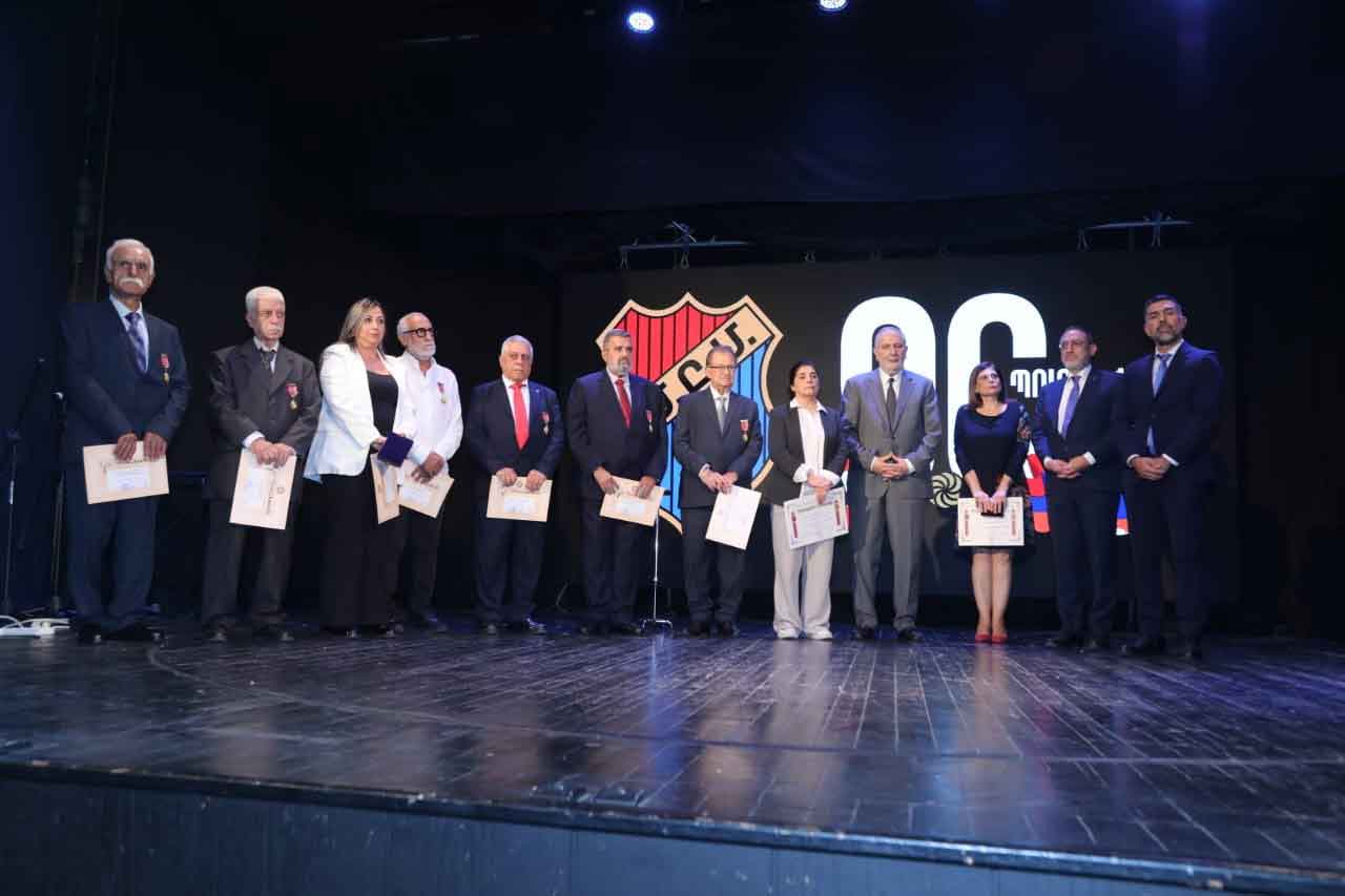 Ապա տեղի ունեցաւ շքանշաններու տուչութիւն: ՀՄԸՄ-ի Լիբանանի Շրջանային վարչութեան ատենապետ Վահան Համամճեան ՀՄԸՄ-ի «Ծառայութեան» շքանշաններ յանձնեց մասնաճիւղին մէջ երկար տարիներու վաստակ ու ներդրում ունեցող միութենականներ` Պաղտասար Յարութիւնեանի, Րաֆֆի Քէշիշեանի, Կարապետ Աբրահամեանի (դուստրը ստացաւ), Սեպուհ Թոփալեանի, Գօգօ Քէշիշեանի, Հրայր Ֆերմանեանի եւ Յովիկ Պիլեմճեանի: