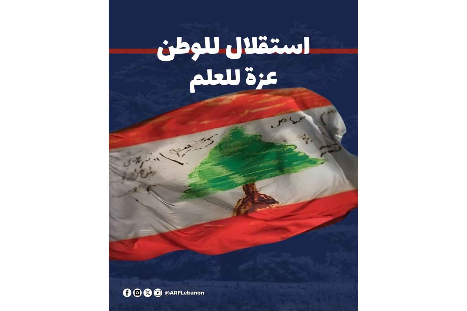ՀՅԴ Լիբանանի Կեդրոնական կոմիտէն Լիբանանի Անկախութեան տօնին առիթով ընկերային ցանցերու վրայ արաբերէնով կատարեց հետեւեալ գրառումը.