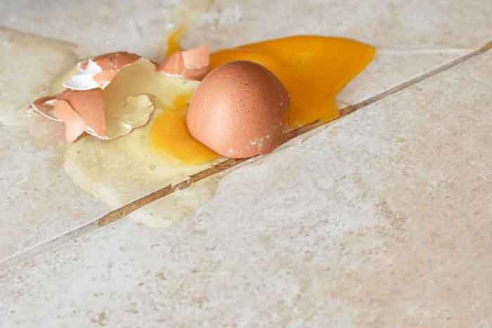 Գետին ինկած, կոտրած ու կպչուն հաւկիթը դիւրին մաքրելու համար անմիջապէս վրան աղ թափել, սպասել քառորդ ժամ եւ, վերջապէս, հաւաքել կարծրացած զանգուածը: