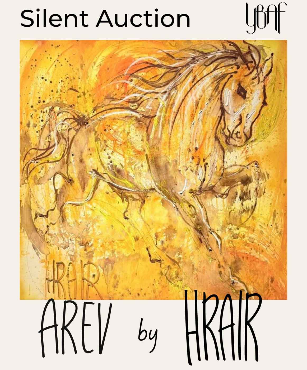 Հանդիսութեան աւարտին Հրայր կենդանի գեղանկարչական ներկայացում մը ունեցաւ, ուր ամբողջացուց նախապէս գծուած կիսաւարտ դեղնաւուն ձի մը: Ի միջի այլոց ձին կեդրոնական կերպարներէն է իր գեղանկարչութեան մէջ: Երբ հարցուցինք` ուրկէ՞ կու գայ ձիուն ազդեցութիւնը, պատասխանեց. «Երբ Պրազիլ կը գտնուէի 1970-ականներուն, շատ ընդարձակ ագարակներու մէջ կը բնակէր ժողովուրդը, իւրաքանչիւր ագարակ փոքր քաղաքի մը տարածութիւնը ունէր գրեթէ: Ձիով սկսանք տեղէ տեղ երթալ, հոն է, որ սիրեցի ձին: Անասուններ շատ կը սիրեմ, բայց ձին իւրայատուկ տեղ կը գրաւէ ներաշխարհիս մէջ»: