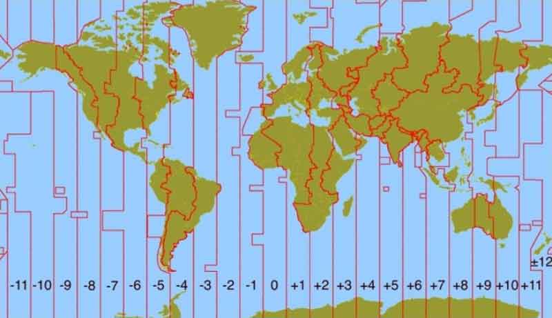 Դէպի արեւելք ժամերը կ՛աւելնան, + 1 ժամ, + 2 ժամ…