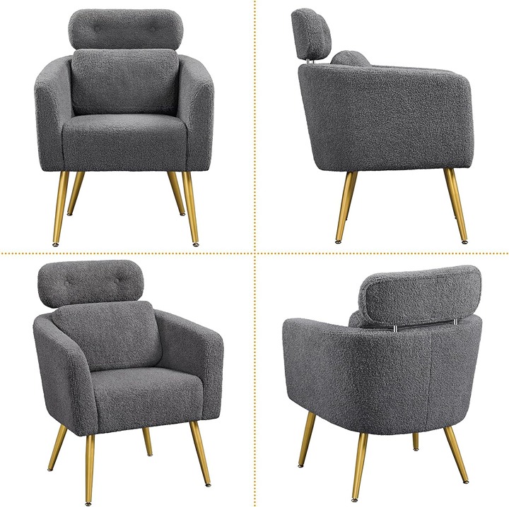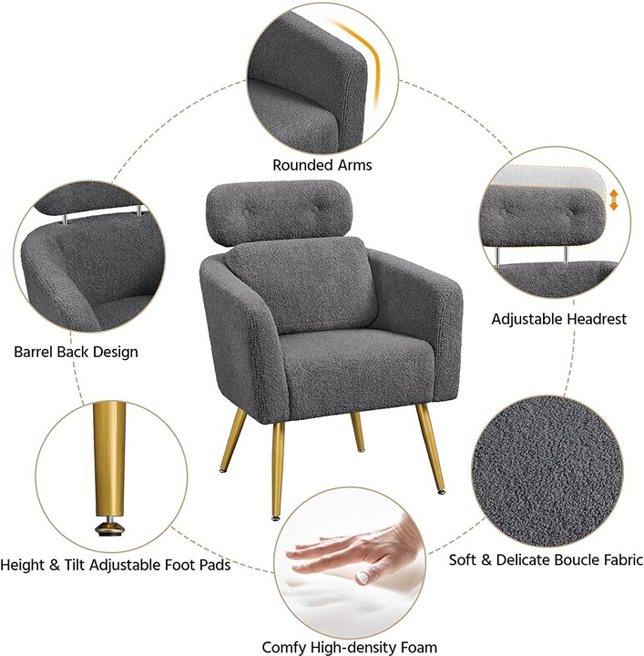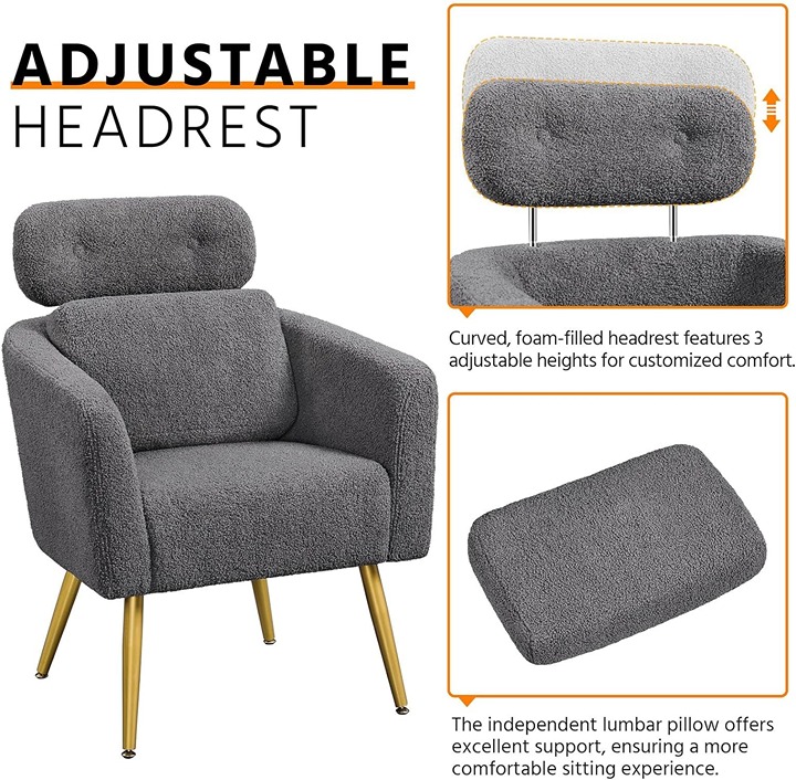 【Adjustable Headrest】This accent armchair features an extendable headrest with 3 settings, allowing you to find the most comfortable position for shoulder and upper back support while sitting, reading, watching TV, and more.